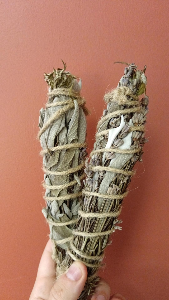 Composés de sauge blanche & officinale, romarin, lavande et armoise, ils offrent une fumée douce aux vertus apaisantes et purificatrices.