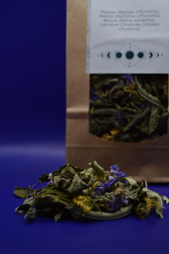 Mélisse, verveine citronnée, mélilot officinal, mauve sylvestre.
